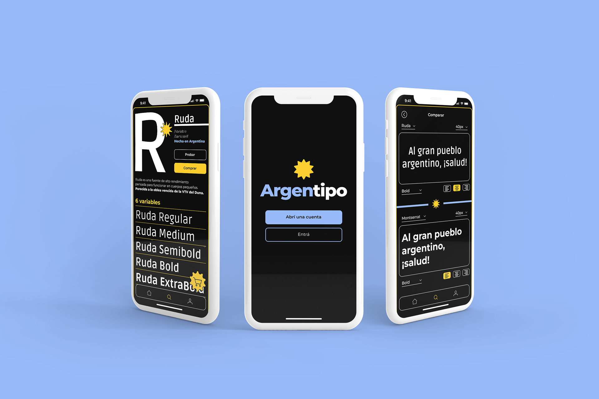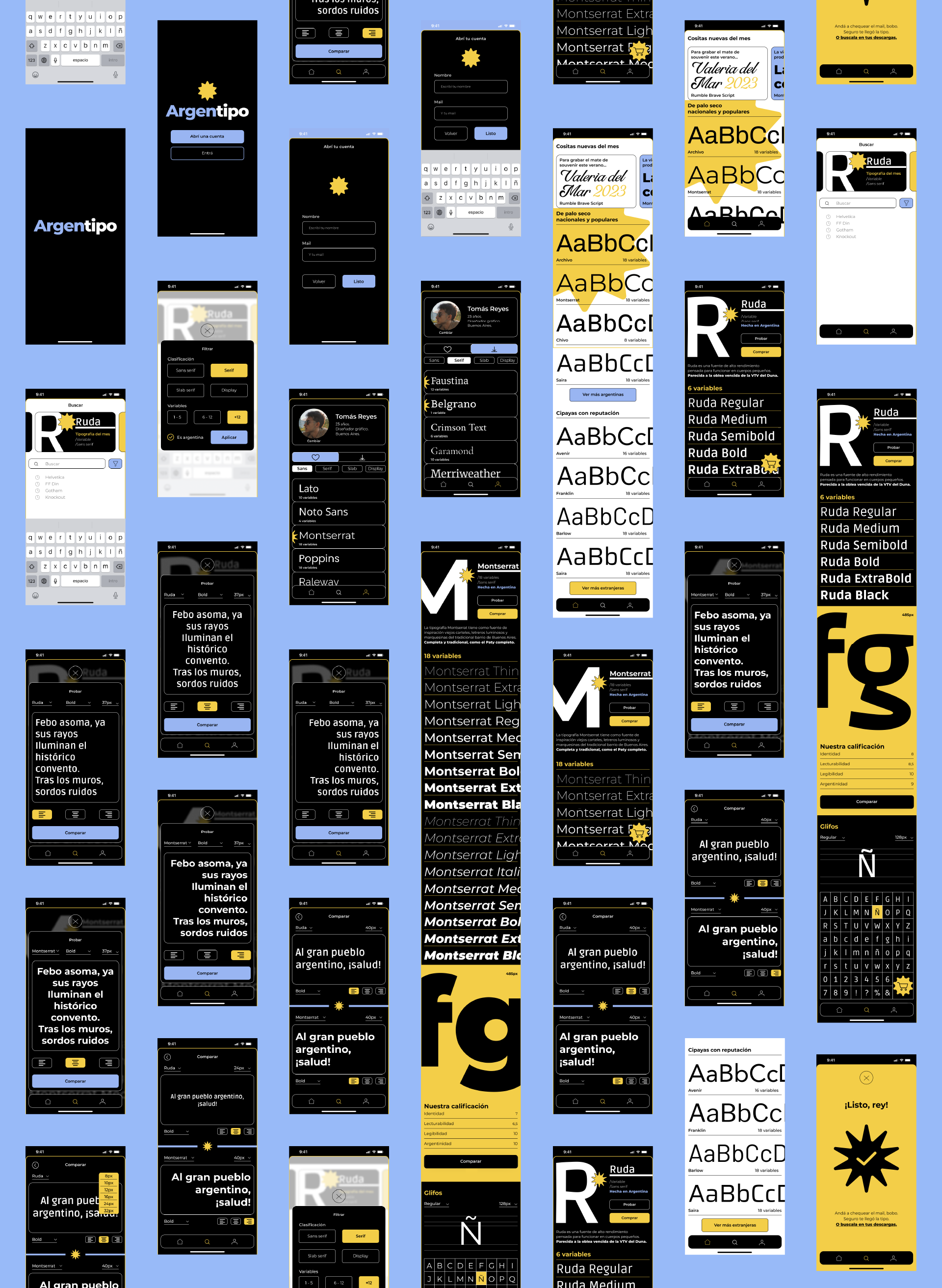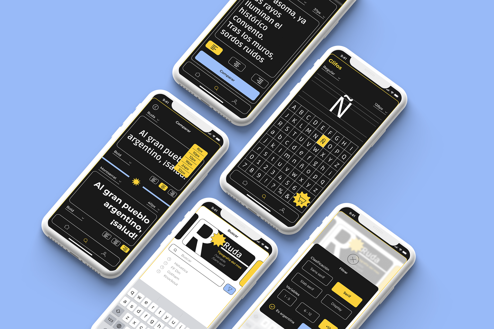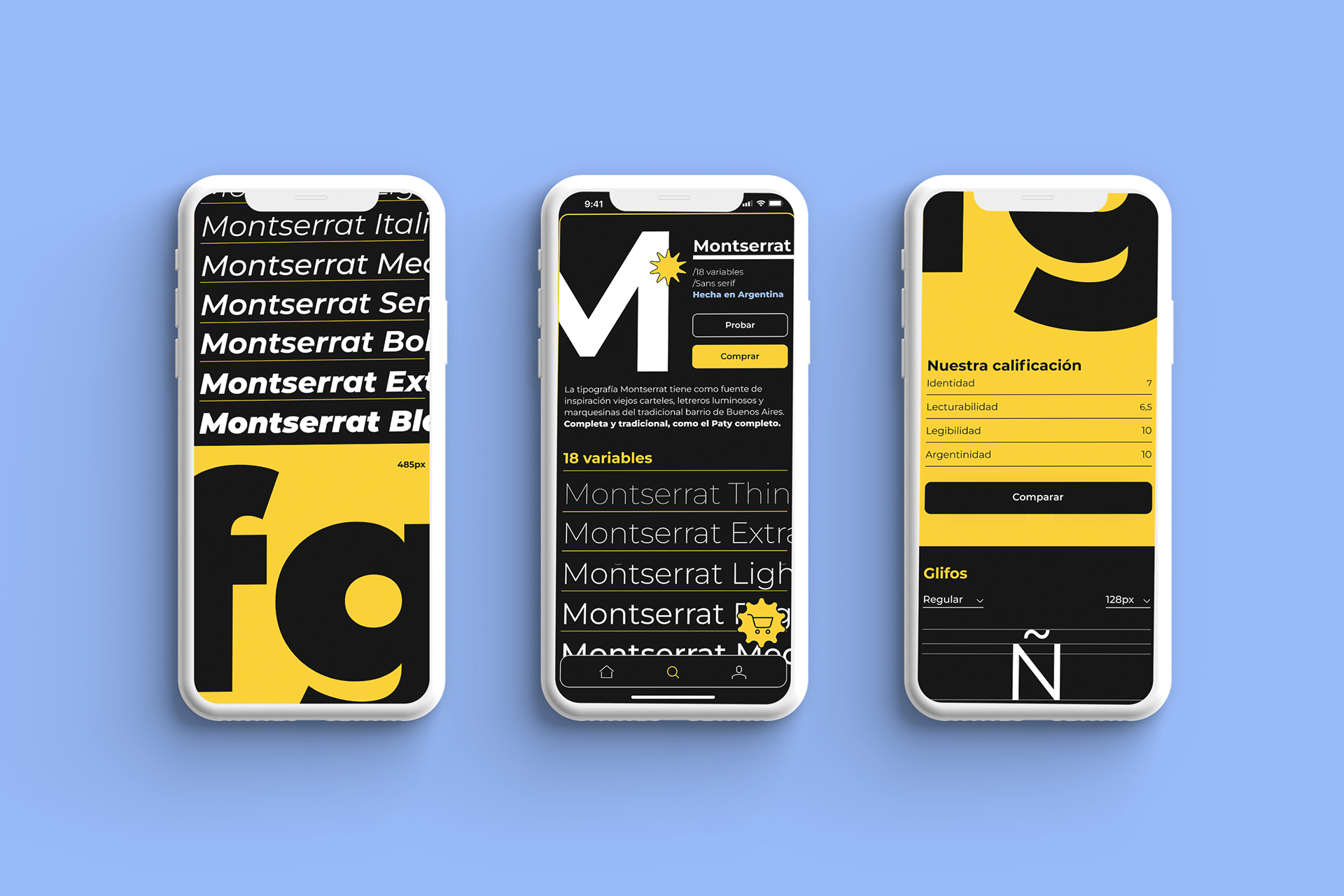 App que permite exhibir, probar, comparar y descargar tipografías. 2022.